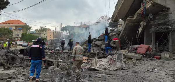 PICTURED ABOVE: First aid responders are seen at the site of an Israeli airstrike that targeted the southern Lebanese village of Kfar Roummane. War in