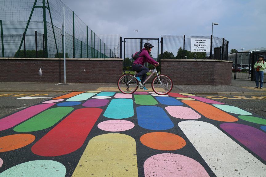 Colourful crossing outside Dumbarton Academy.